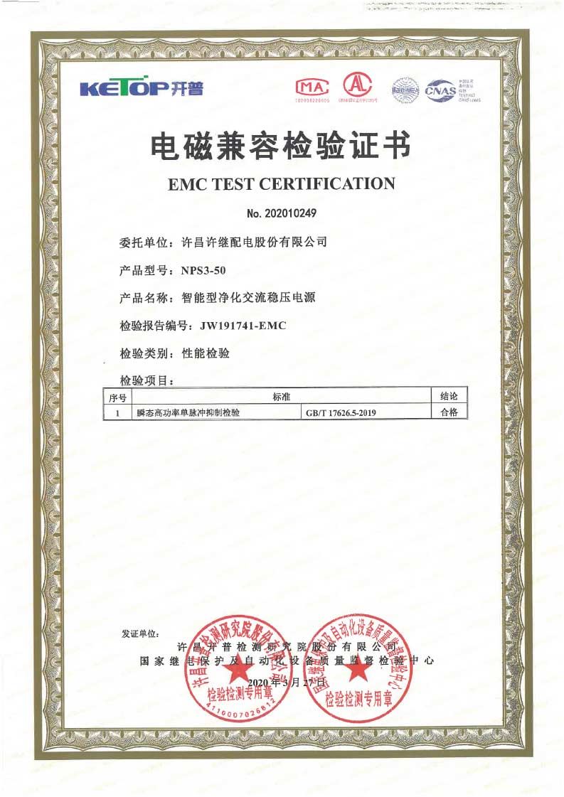 智能凈化穩(wěn)壓電源測試17626. 7項報告 證書JW200701